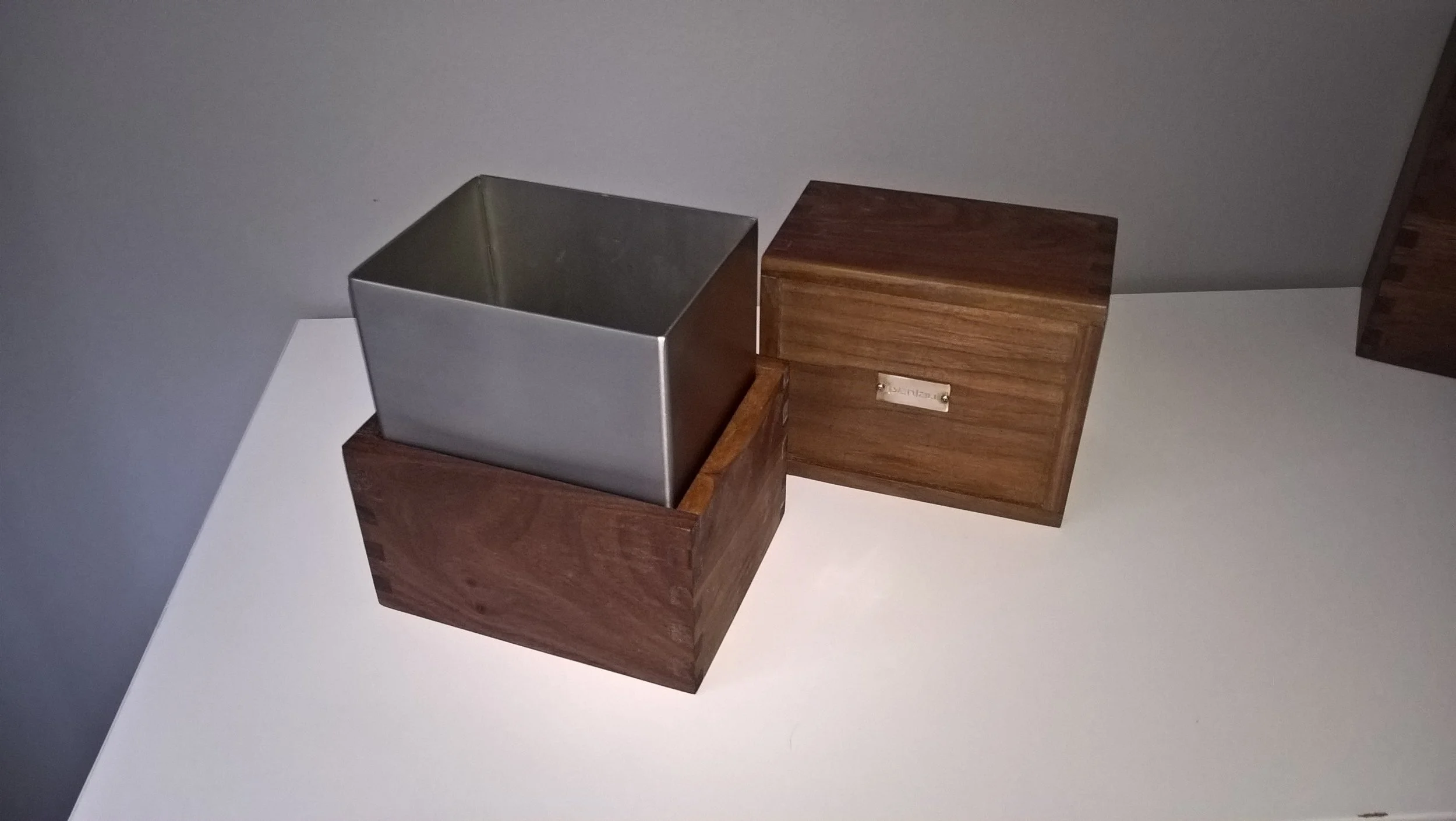 Lækker opbevaringsboks i amerikansk valnød og rustfrit stål