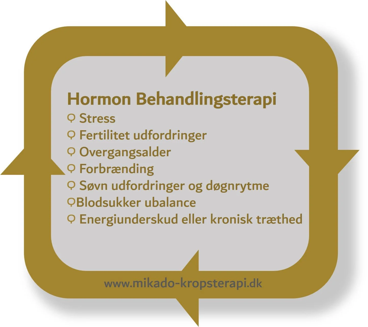 De eneste behandlinger der kan bookes, som separat behandling, er Hormon Terapi, som er en kropsbehandling på briks, hvor målet er at berolige og balancere nervesystemet, kredsløbet og hormonsystemet udfra forskellige hormonelle udfordringer i kroppen.