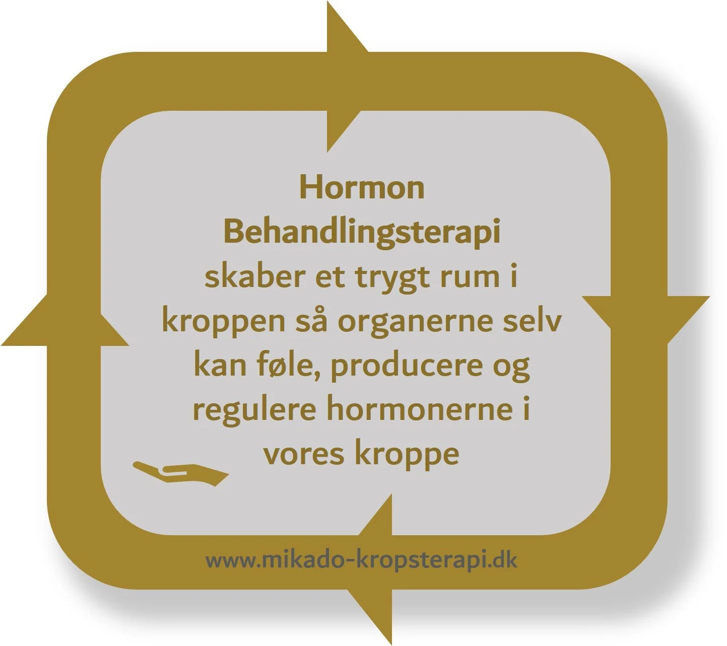 I den hormonelle behandling bruger vi meget viden fra kropsterapien, som vejrtrækning, kroppens sammenhænge, meridianbaner, zonepunkter, organ- og muskelrelationer m.v., men fokus er mere på, at arbejde med nervesystemet og hjælpe kroppens endokrine system og organer til at finde rytme og balance, så der mærkes ro i kroppen og det indre finder en bedre balance og giver overskud til et bedre liv.