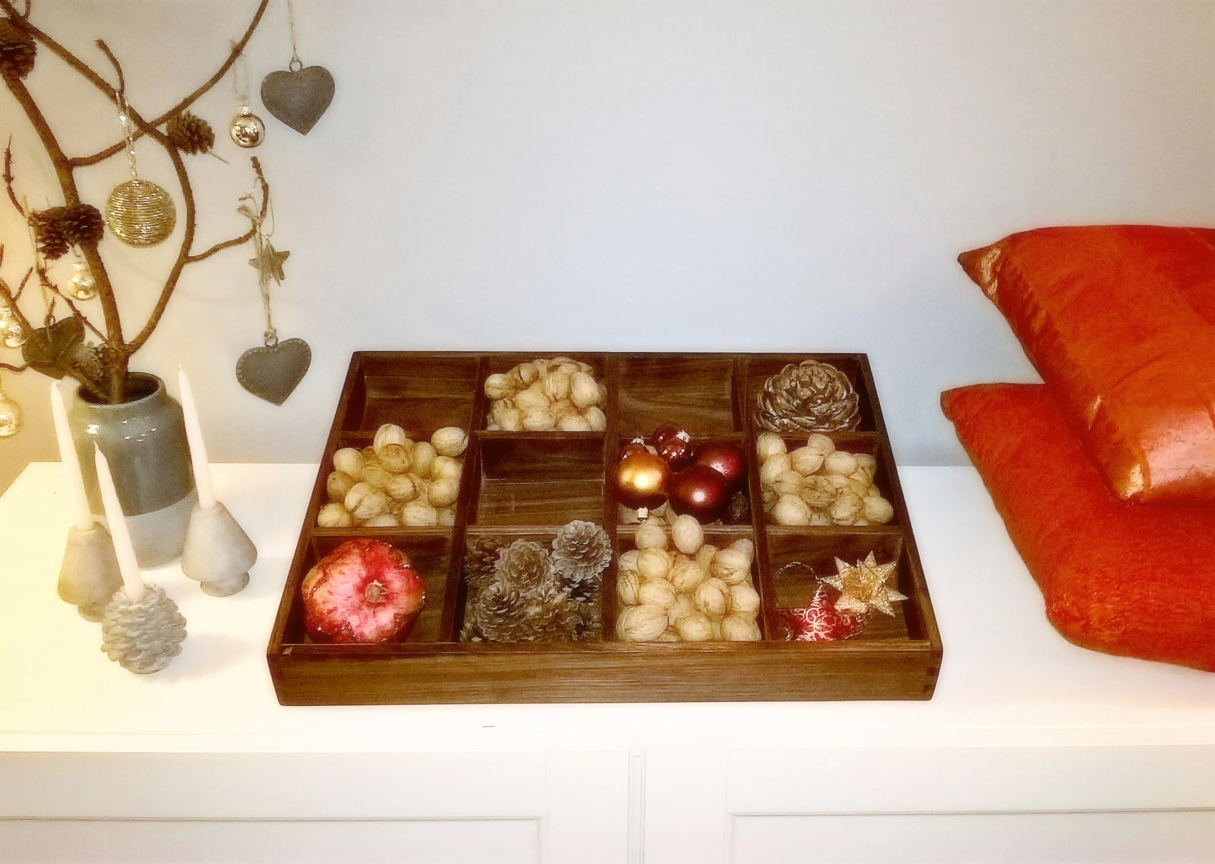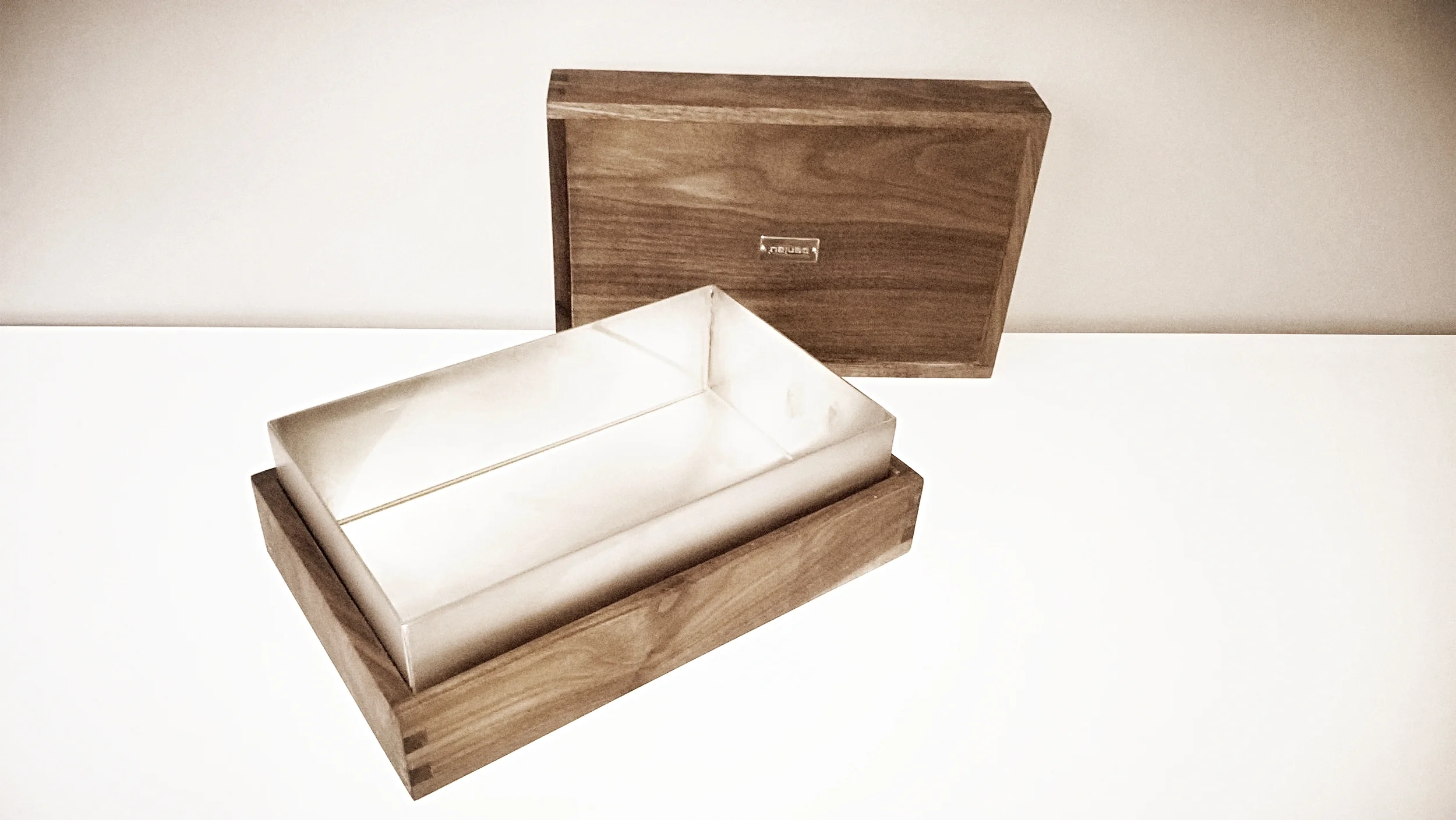Træ box, olieret valnød 38,5/30,5/6 cm (b/d/h)