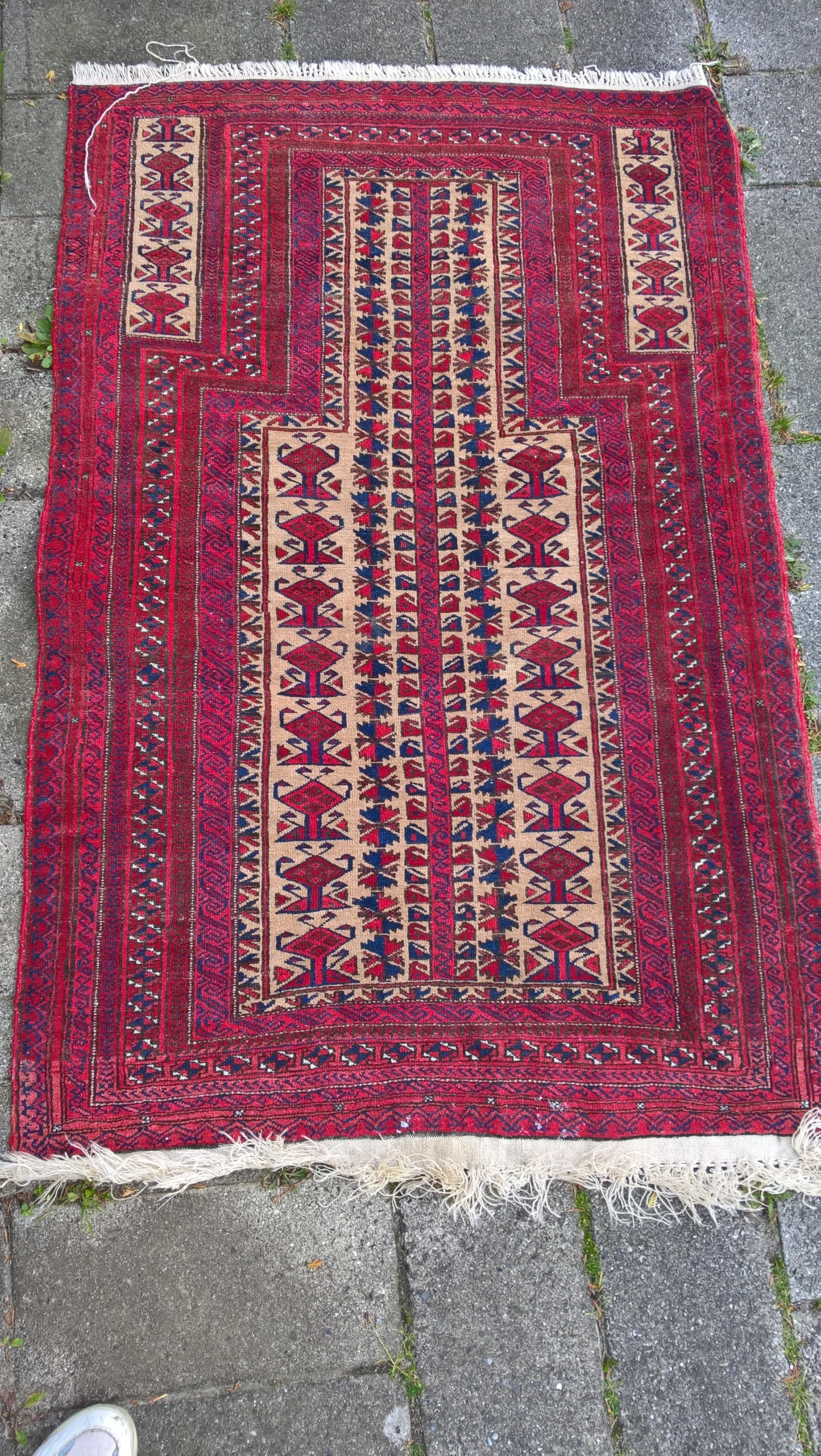 Bedetæppe fremstillet af en nomade stamme, der trak tværs over de landskaberne, hvor den iranske/afghanske grænse går nu.