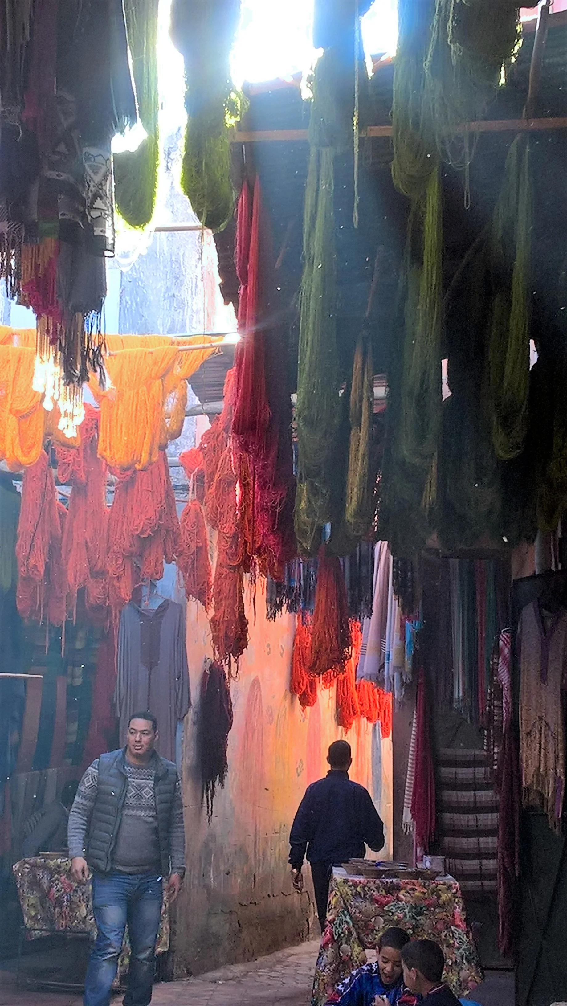 Alle dele er håndlavetlokal eller syet om af kelimtæpper og sjaler produceret i små landsbyer i bjergene omkring Marrakesh